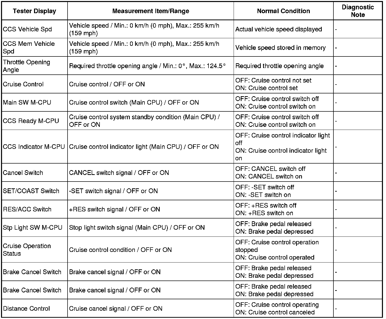 CRUISE CONTROL: CRUISE CONTROL SYSTEM: DATA LIST / ACTIVE TEST