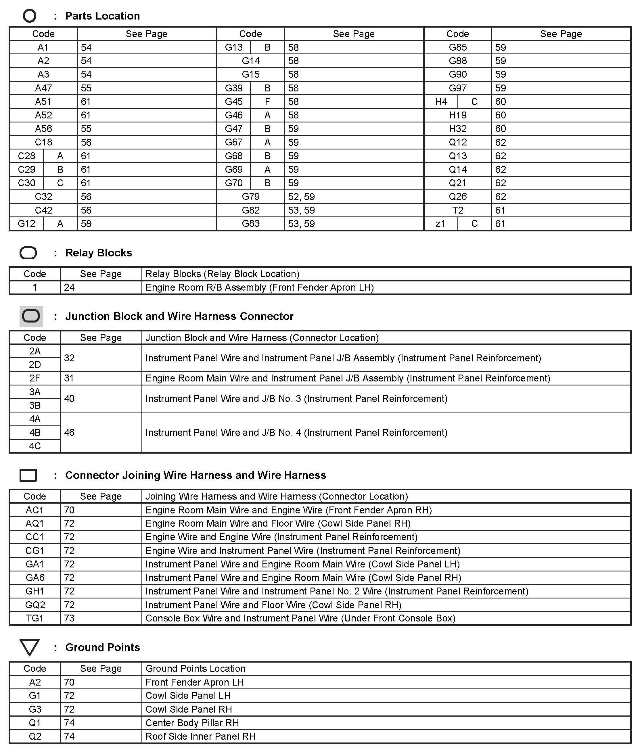 Locations: The locations of components, connectors, ground points, and splices referred to within these diagrams can be found at Vehicle Locations. Locations
