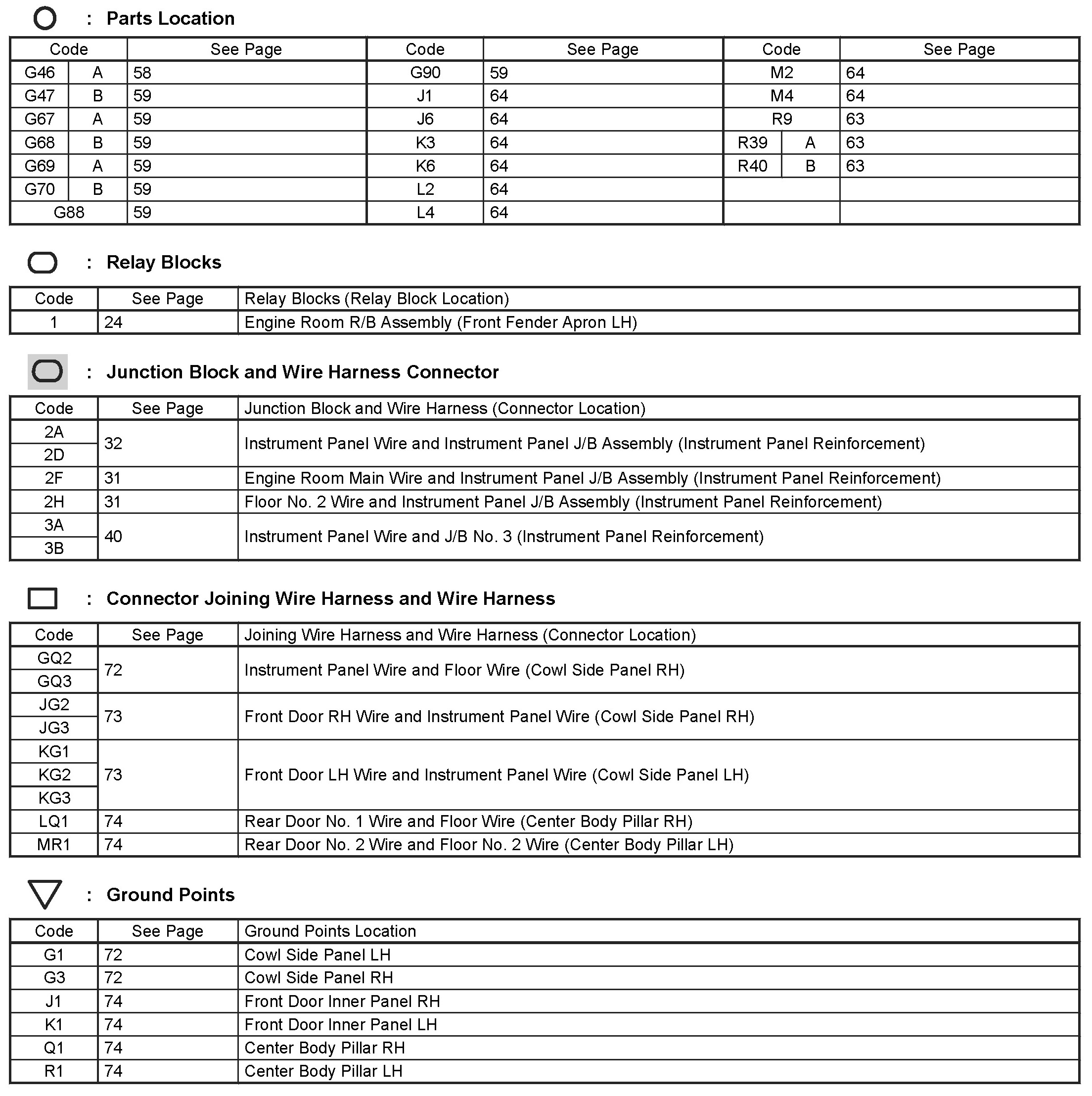 Locations: The locations of components, connectors, ground points, and splices referred to within these diagrams can be found at Vehicle Locations. Locations