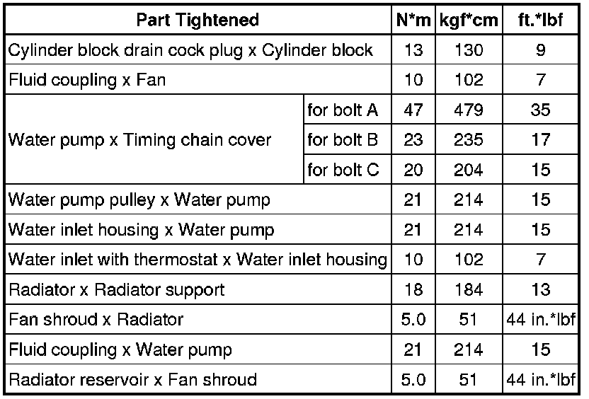 SPECIFICATIONS: 1UR-FE COOLING: TORQUE SPECIFICATIONS