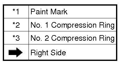 (b) Using a piston ring expander, install the 2 compression rings with the painted mark on the right side.