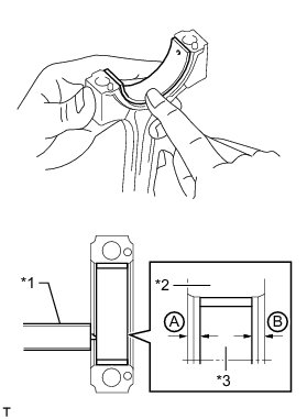 (b) Using a vernier caliper, measure the distance between the connecting rod cap edge and connecting rod bearing edge.