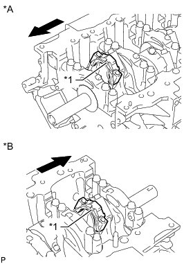 (b) Install the 4 thrust washers to the No. 3 journal position of the cylinder block and bearing cap with the oil grooves facing outward.