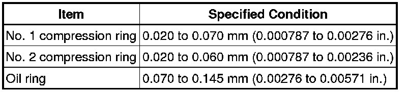 (a) Using a feeler gauge, measure the clearance between a new piston ring and the wall of the ring groove.