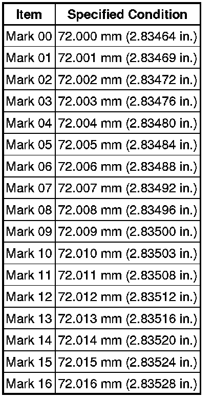 93.980 to 93.990 mm (3.7000 to 3.7004 in.)