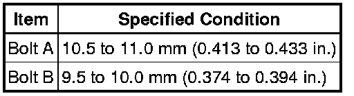 If a visual check reveals no excessively thin areas, check the area of the bolt around the point indicated in the illustration and find the area that has the smallest diameter.