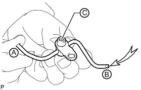 (d) Push the check valve while covering A and blow air into B. Check that air passes through C. Perform the check again while covering B, pushing the check valve and blowing air into A.