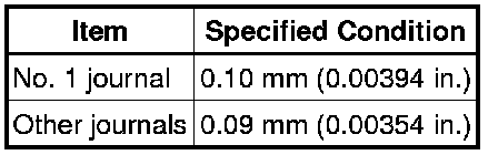 If the oil clearance is more than the maximum, replace the camshaft. If necessary, replace the camshaft housing sub-assembly.
