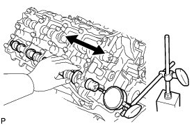(b) Using a dial indicator, measure the thrust clearance while moving the camshaft back and forth.