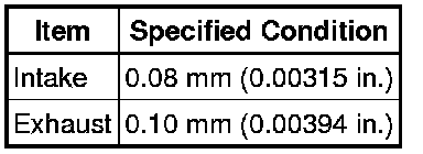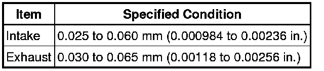 (1) Check that the contact surfaces of the valve seat and valve face are in the middle area of their respective surfaces, with the width between 1.1 to 1.5 mm (0.0433 to 0.0591 in.).