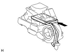 (h) Attach the 2 clamps and install the air conditioning wiring harness to the rear cooling unit case.