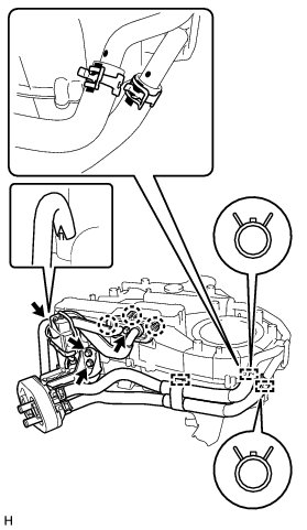 When installing the clips, align the protruding parts of the clips with the white marks of the hoses.