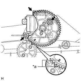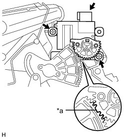 (a) Position the air mix damper servo so that the large tooth of the gear engages with the cutout part as shown in the illustration and install the air mix damper servo with the 2 screws.