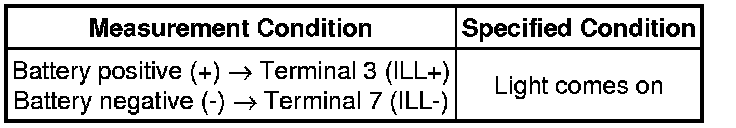 (1) Apply battery voltage between the terminals of the light and check the operation of the light.