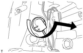 (b) Turn the cover in the direction indicated by the arrow and disconnect the wire.