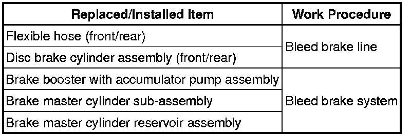* When the brake fluid is bled, DTCs may be stored. Therefore, after air bleeding, always clear the DTCs and check that a normal system code is output.