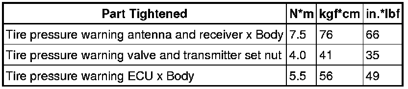 SPECIFICATIONS: TIRE PRESSURE MONITORING: TORQUE SPECIFICATIONS