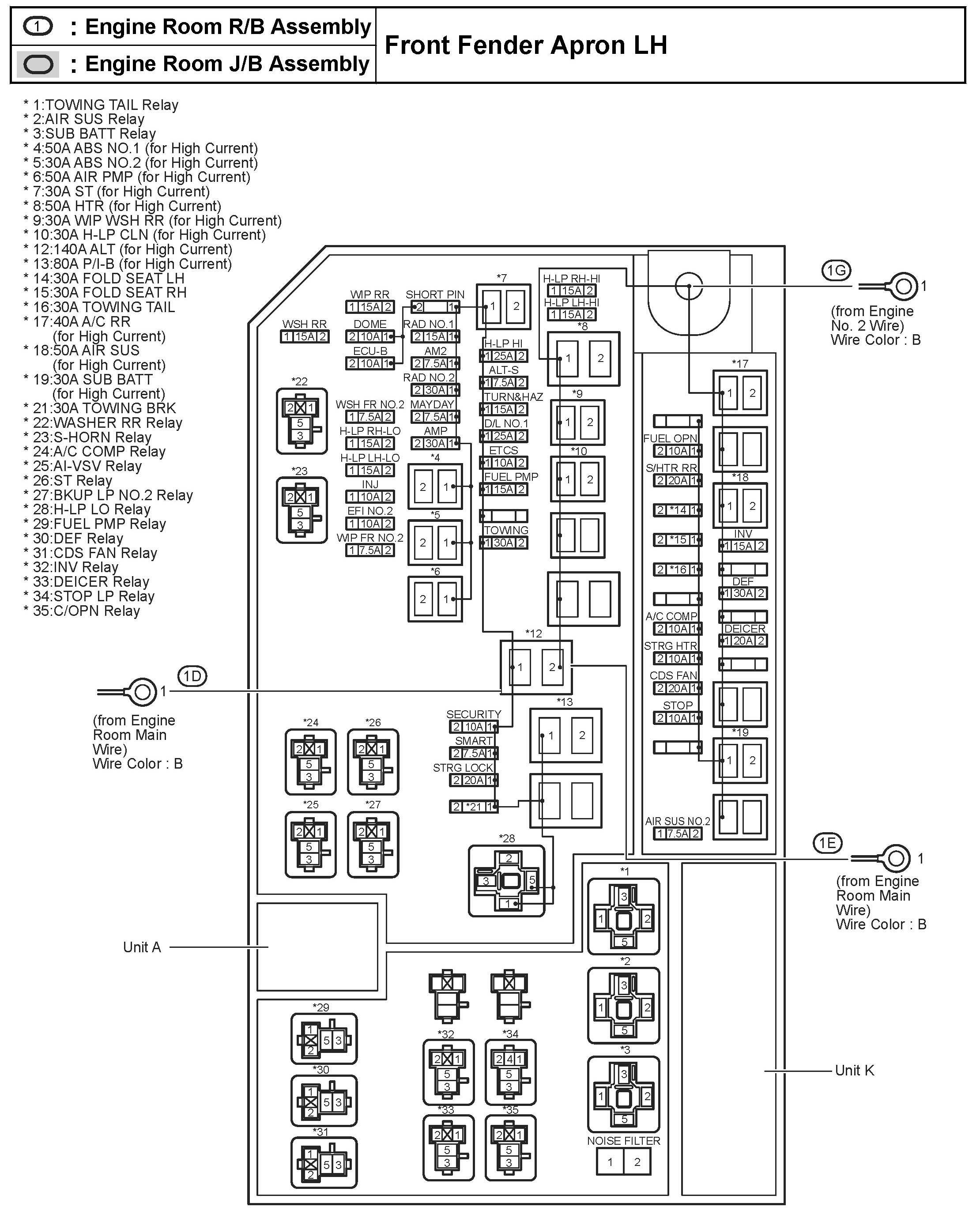 25 - Engine Room R/B Assembly, Engine Room J/B Assembly - Front Fender Apron LH: