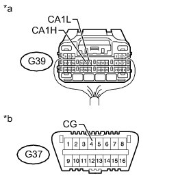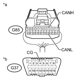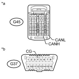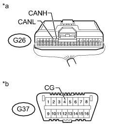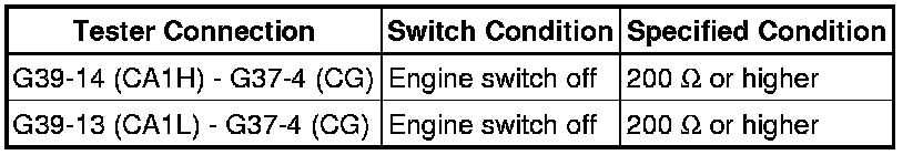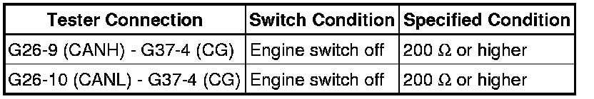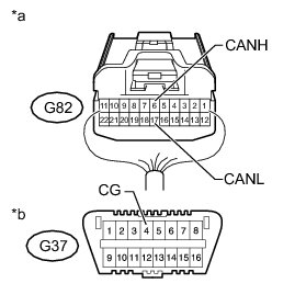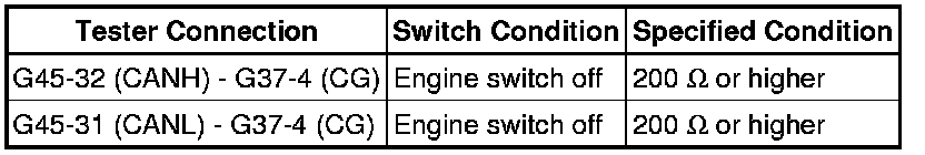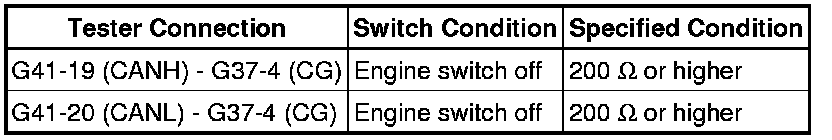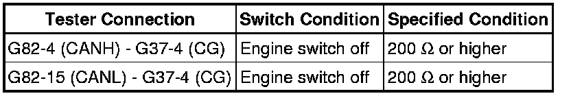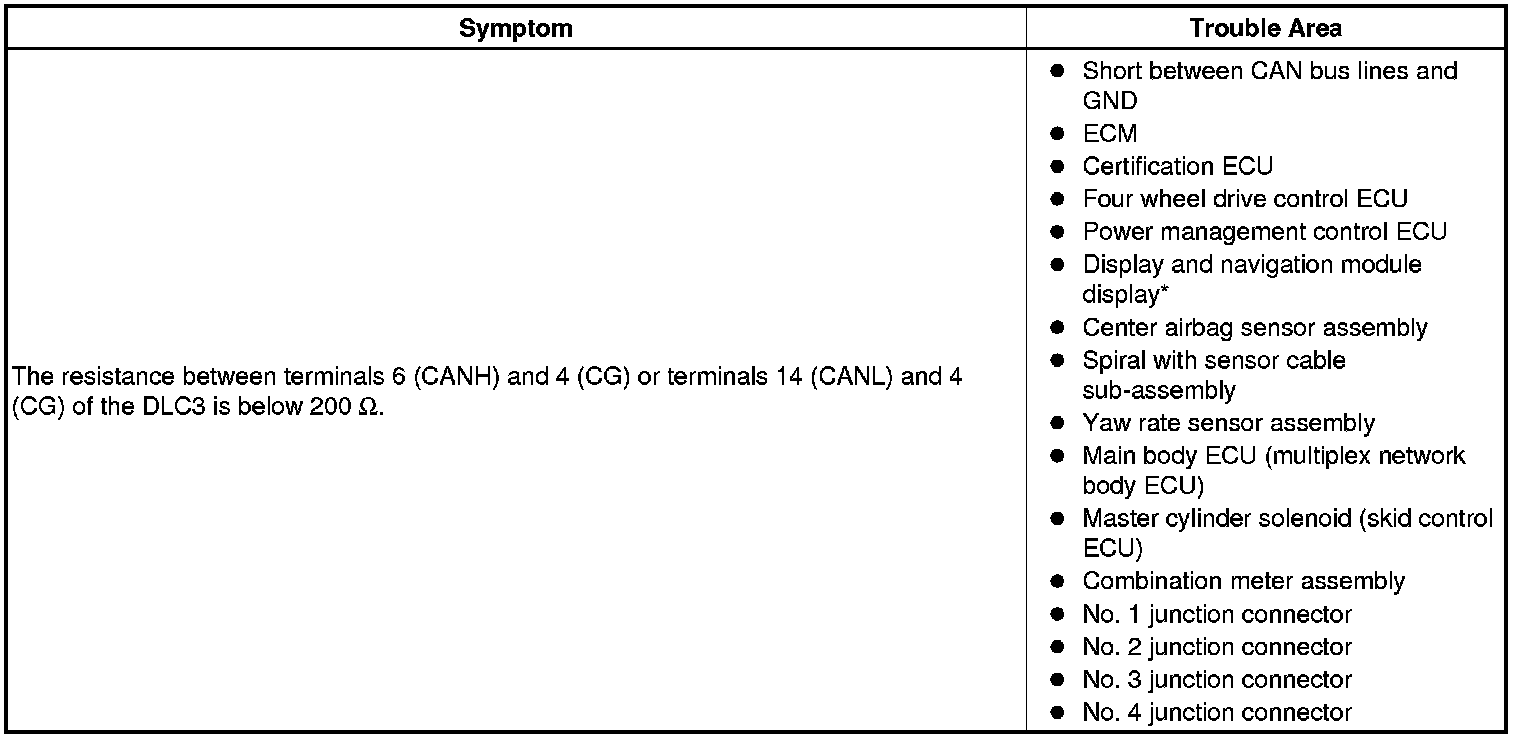 There may be a short circuit between the CAN bus lines and GND when the resistance between terminals 6 (CANH) and 4 (CG) or terminals 14 (CANL) and 4 (CG) of the DLC3 is below 200 Ohms.