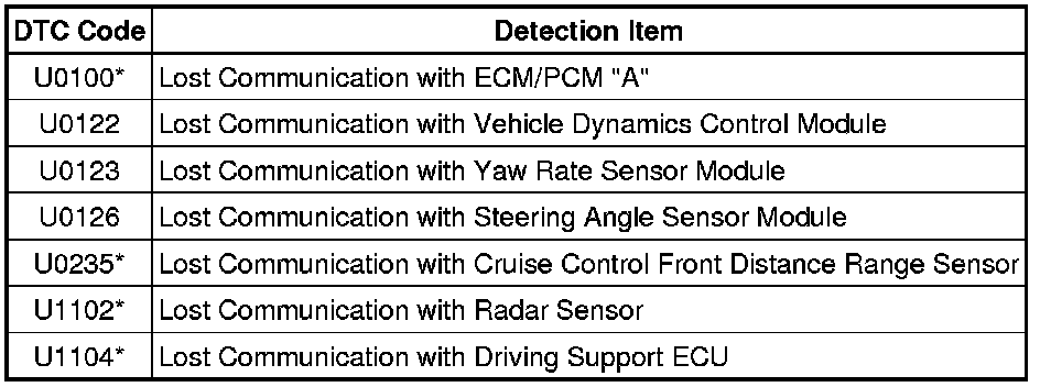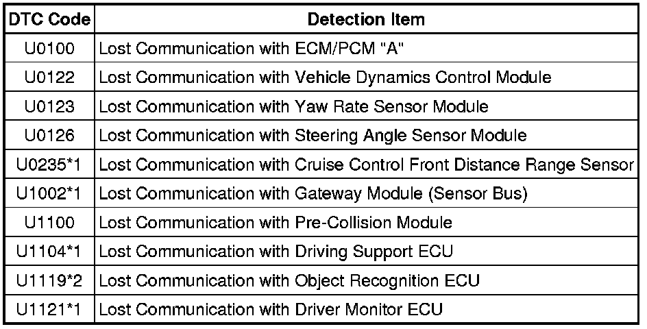 *2: If this DTC is output, first perform troubleshooting for the pre-collision system, and then perform troubleshooting for the branch line Pre-Collision System.