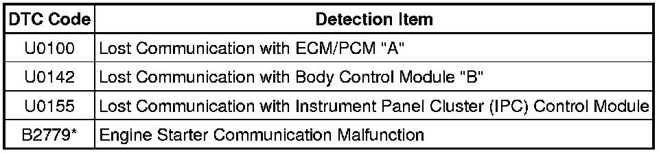 *: Refer to the Engine Immobiliser System Engine Immobilizer System.