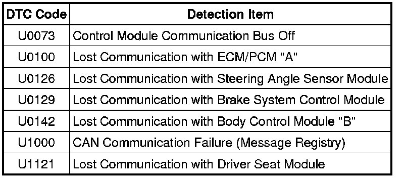 The front power seat switch LH is connected to the CAN communication system but CAN communication DTCs are not stored.