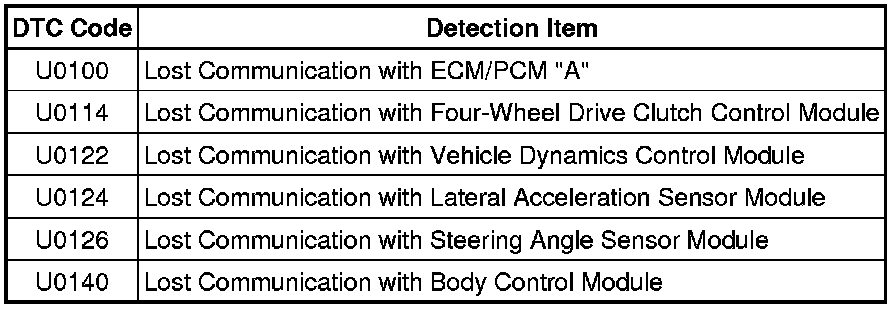 3. DTC TABLE BY ECU