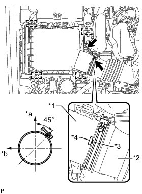 (c) Attach the clamp and connect the mass air flow meter connector.