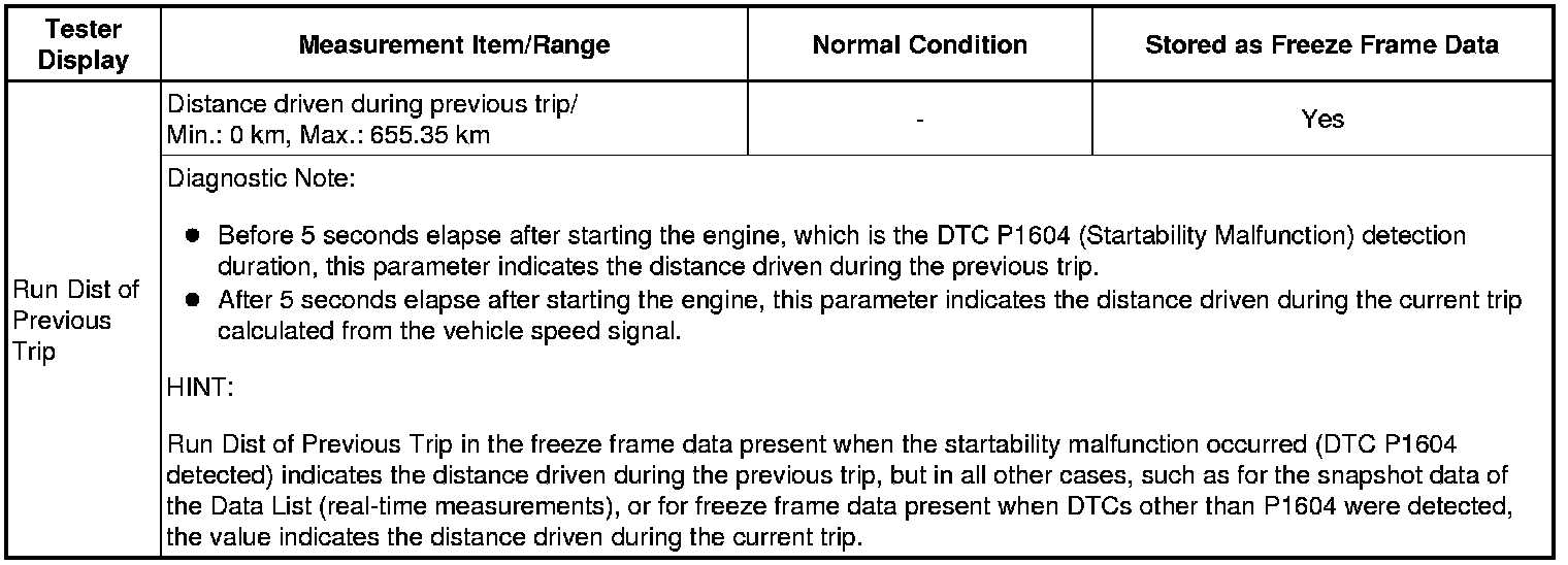 Previous Trip Coolant Temp