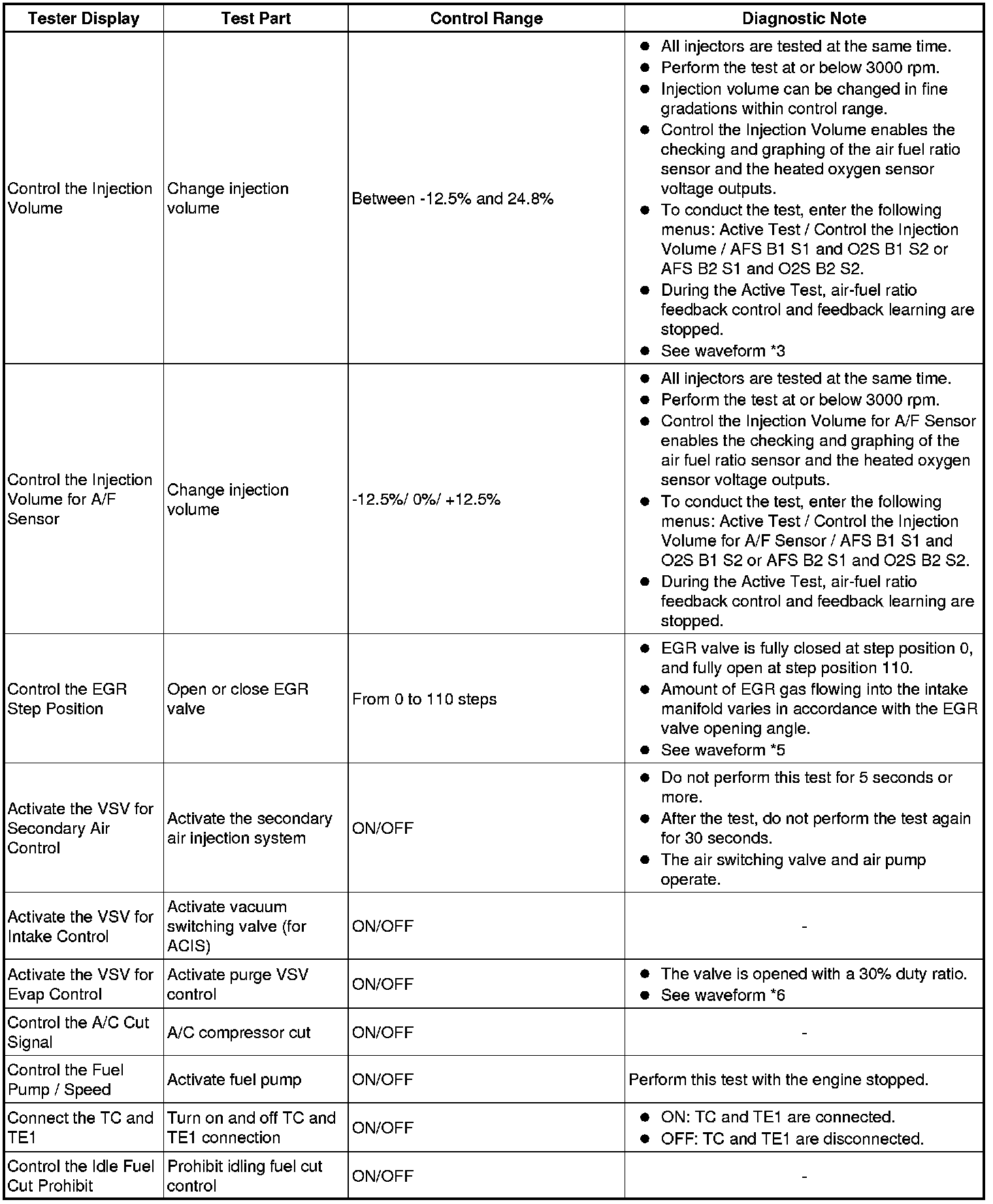 * *: Change the control value for Control the VVT Exhaust Linear to +30% or -30% in increments of 5%.