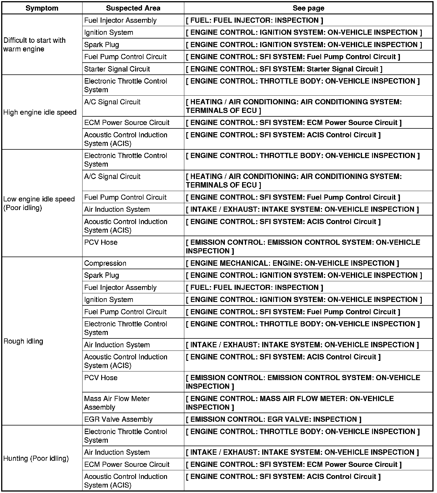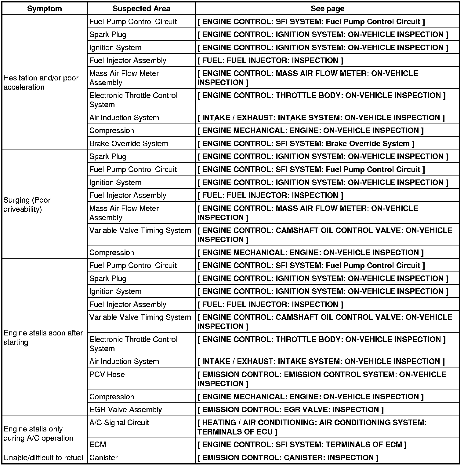 1UR-FE ENGINE CONTROL: SFI SYSTEM: PROBLEM SYMPTOMS TABLE