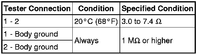 When measuring the resistance, make sure that the surface temperature of the air switching valve assembly is 20°C (68°F).