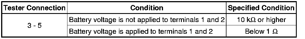 If the result is not as specified, replace the starter relay.