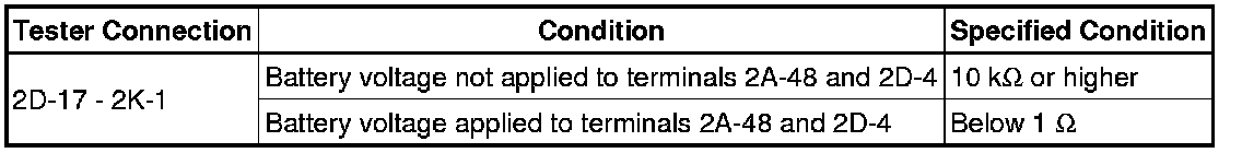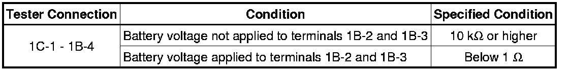 If the result is not as specified, replace the circuit opening relay.