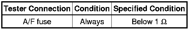 If the result is not as specified, replace the A/F fuse.