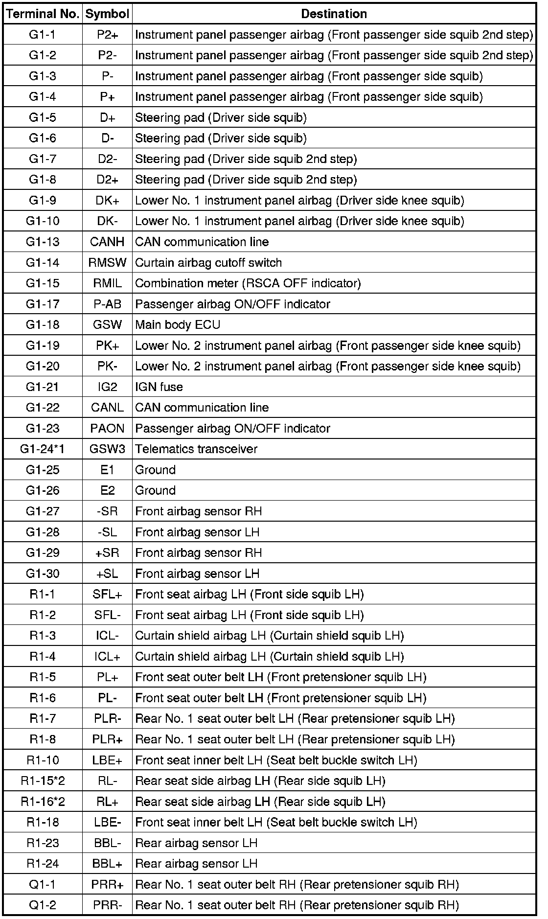 SUPPLEMENTAL RESTRAINT SYSTEMS: AIRBAG SYSTEM: TERMINALS OF ECU