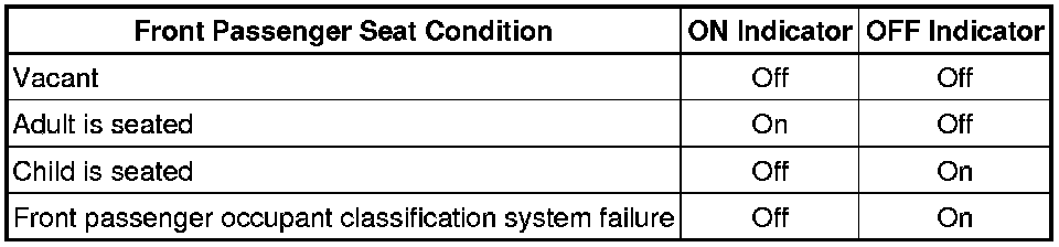 * When there is a problem in the occupant classification system, both the SRS warning light and passenger airbag ON/OFF indicator ("OFF") come on. In this case, check the DTCs for the airbag system first.