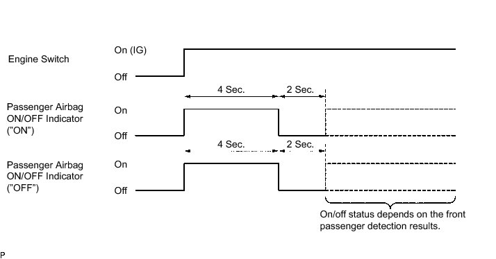 * The passenger airbag ON/OFF indicator comes on based on the timing chart below in order to check the indicator light circuit.
