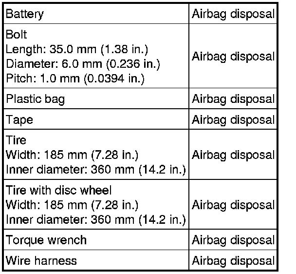 PREPARATION: SUPPLEMENTAL RESTRAINT SYSTEMS: EQUIPMENT