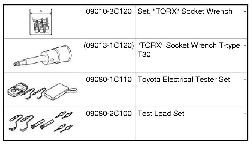 PREPARATION: SUPPLEMENTAL RESTRAINT SYSTEMS: RECOMMENDED TOOLS