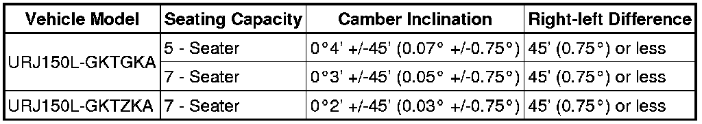 Standard Camber Inclination (Unloaded Vehicle):