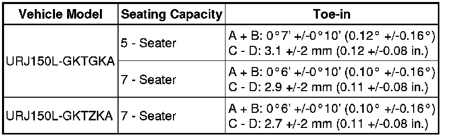 Standard Toe-in (Unloaded Vehicle):
