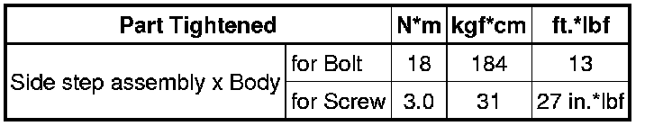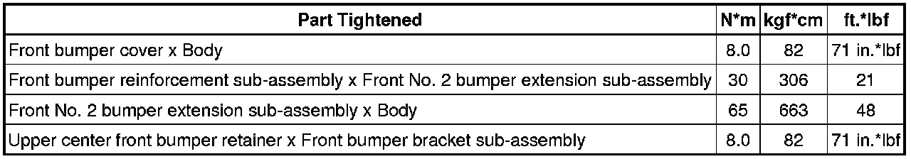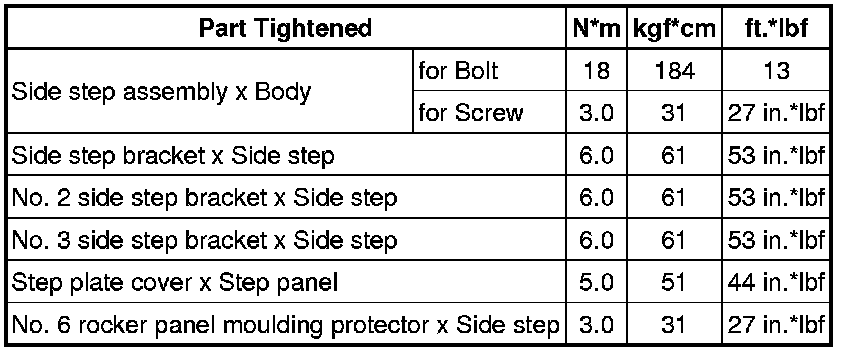 SPECIFICATIONS: EXTERIOR PANELS / TRIM: TORQUE SPECIFICATIONS