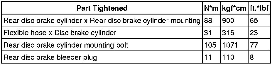 SPECIFICATIONS: BRAKE (REAR): TORQUE SPECIFICATIONS