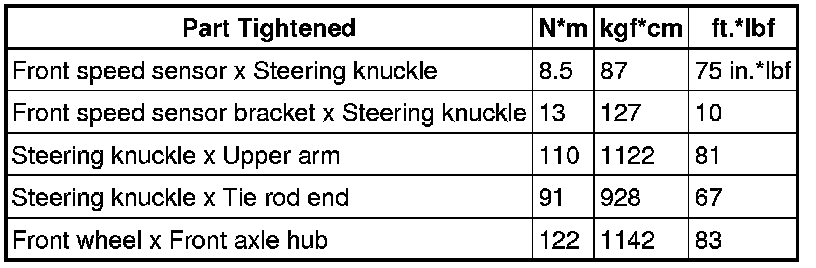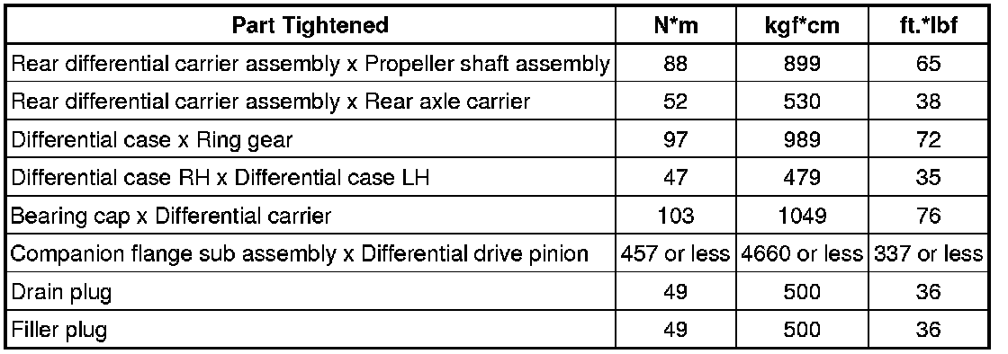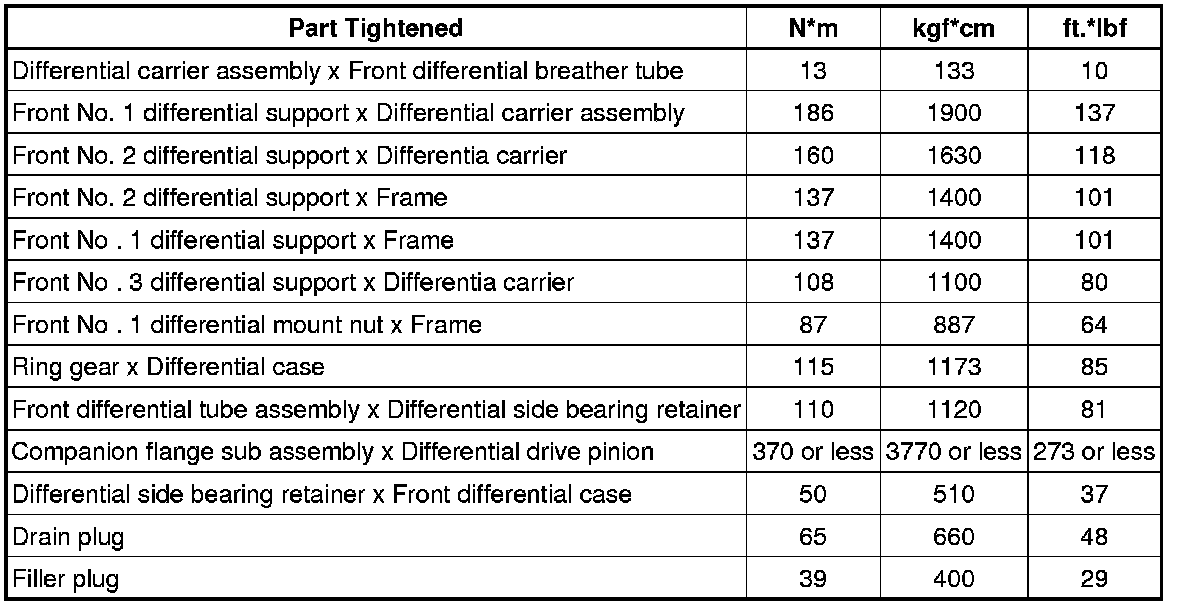 SPECIFICATIONS: AXLE AND DIFFERENTIAL: TORQUE SPECIFICATIONS