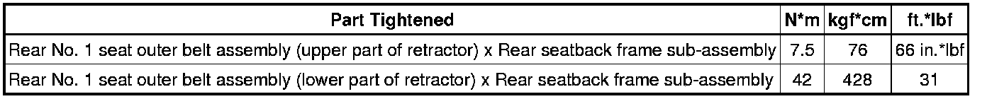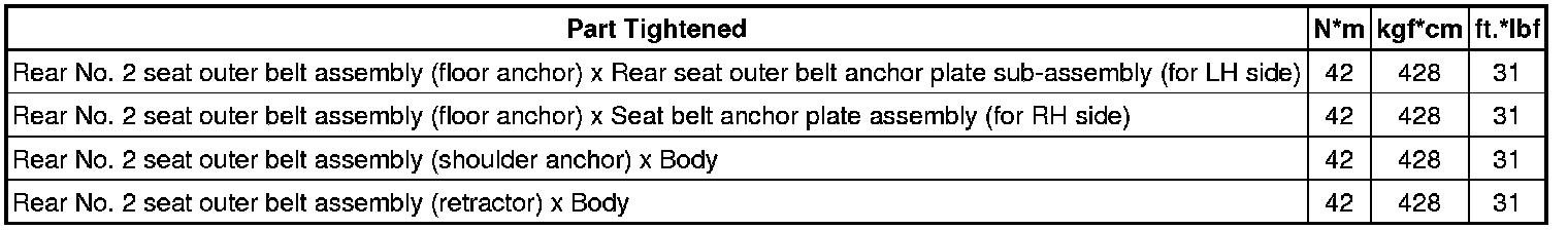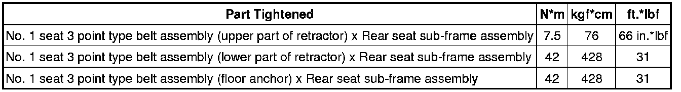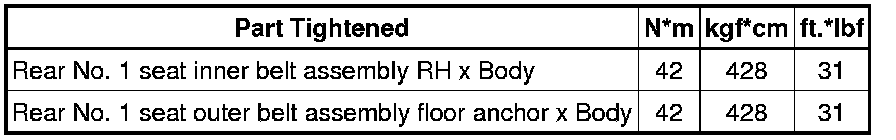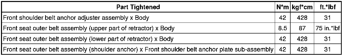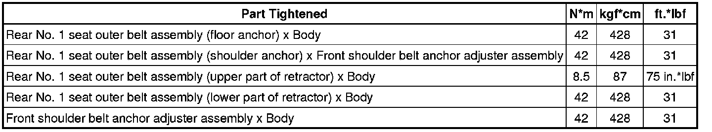 SPECIFICATIONS: SEAT BELT: TORQUE SPECIFICATIONS