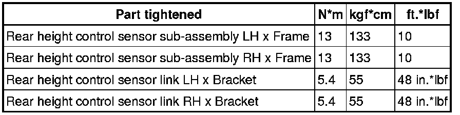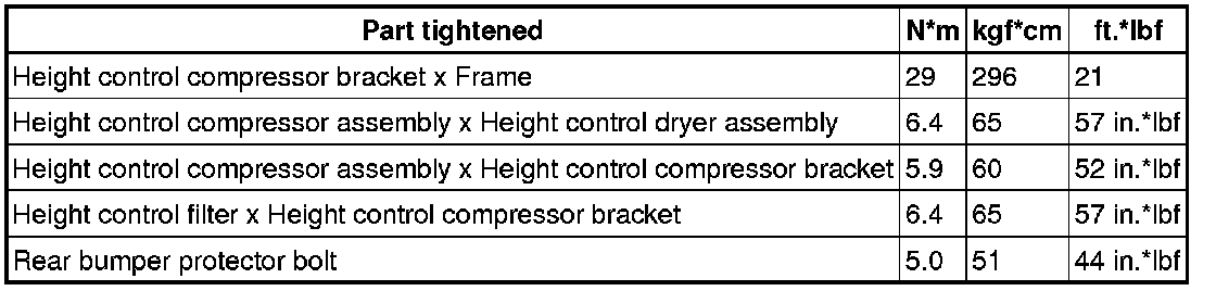 SPECIFICATIONS: SUSPENSION CONTROL: TORQUE SPECIFICATIONS