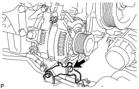 (f) Remove the bolt and disconnect the wire harness bracket from the generator.