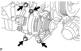 (g) Remove the 3 bolts, nut and generator.