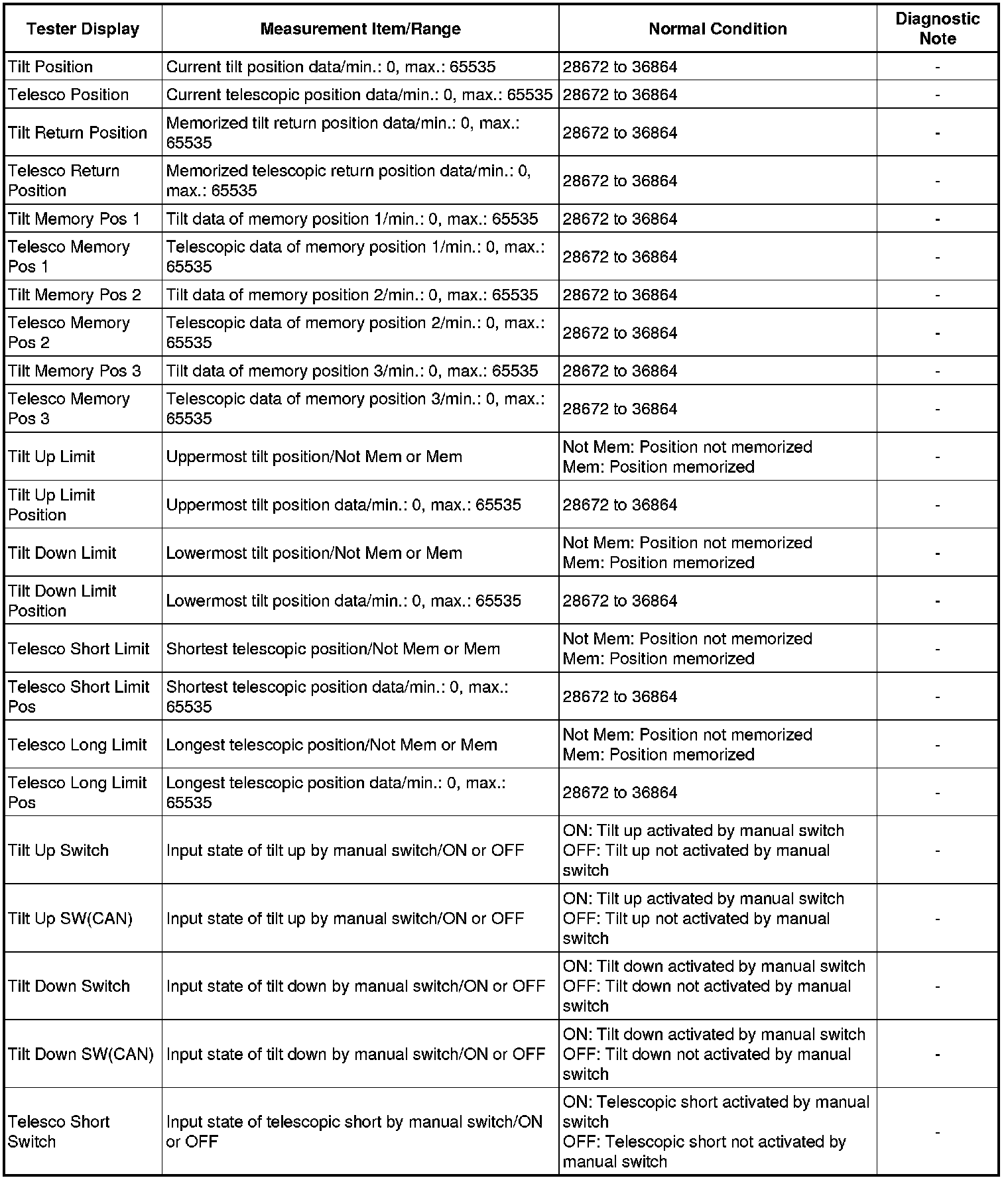STEERING COLUMN: POWER TILT AND POWER TELESCOPIC STEERING COLUMN SYSTEM: DATA LIST / ACTIVE TEST
